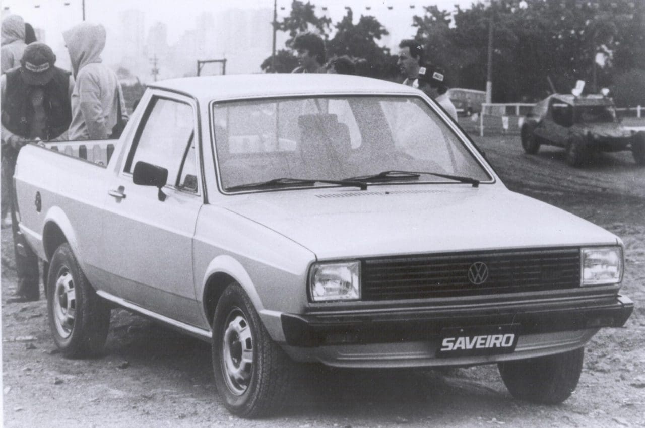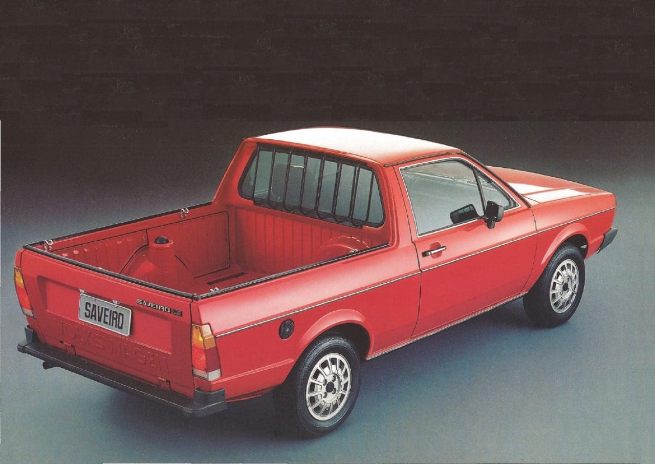 Derivada do VW Gol, a pick-up Saveiro foi lançada em junho de 1982 e surfava na onda das caminhonetes pequenas baseadas em carros compactos. Podia carregar até 570 kg, trazia 870 litros no espaço da caçamba e tinha proposta de ser um carro de campo e de cidade, multiuso: oferecia até um espaço da cabine, atrás do banco do motorista, para uma mala pequena. Até as propagandas da época mostravam seu perfil profissional e de lazer, com apelo especial a pegada jovem.